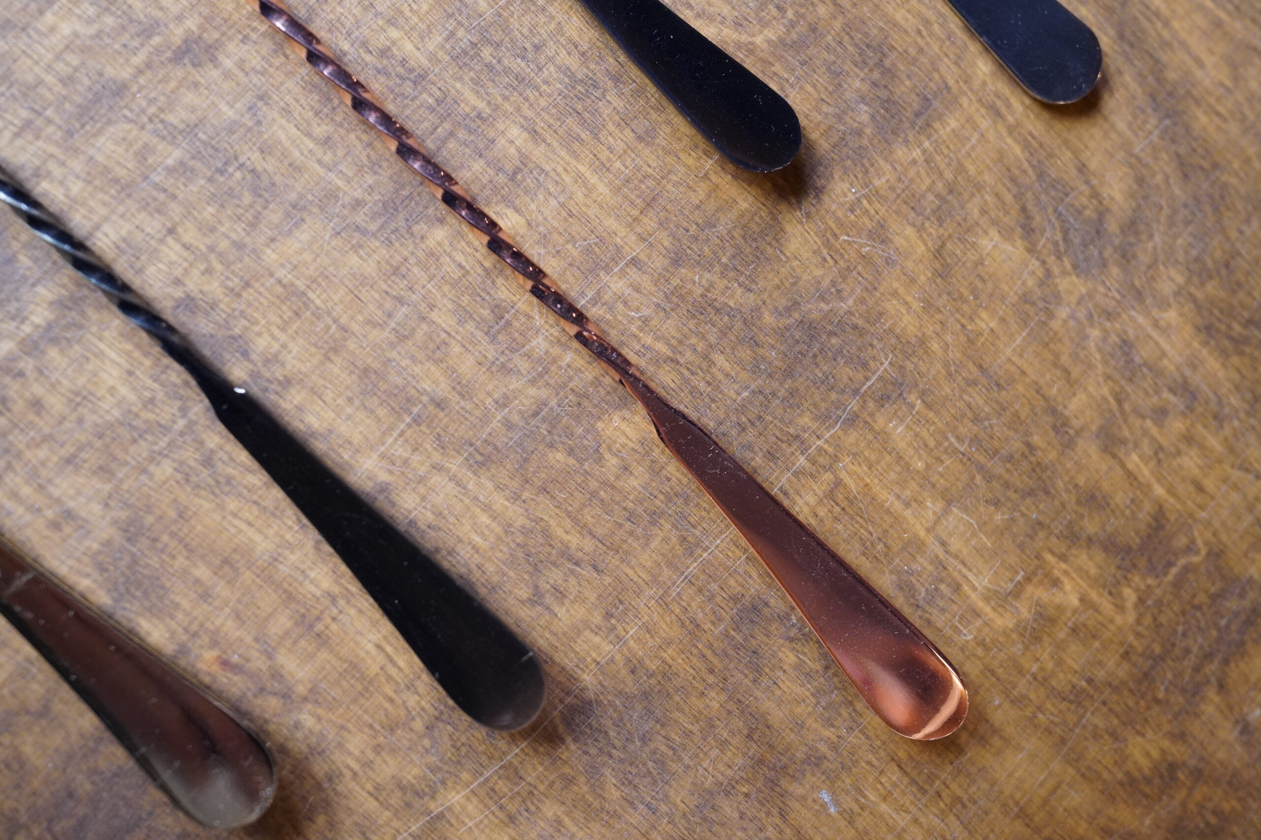 Finition cuivre rosé, tige torsadée, trident stable. À 30 cm, il est maniable et précis. Un outil qui allie style et efficacité, idéal pour les bars à ambiance.