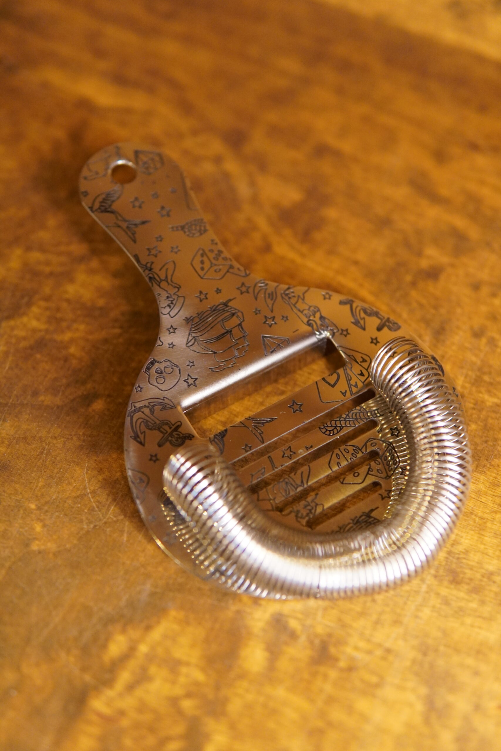 La Tattoo Coley, c’est la passoire qui a du style. Gravée façon tatouage, avec de l’encre noire alimentaire, oui, c’est safe et ça claque. Pas de griffes, mais un ressort bien serré pour filtrer net. Tête large, corps solide, zéro soudure : elle tient la route. En acier japonais 18/8, finition polie, elle résiste à la rouille et au temps. Et côté look, elle ne passe pas inaperçue derrière le bar.